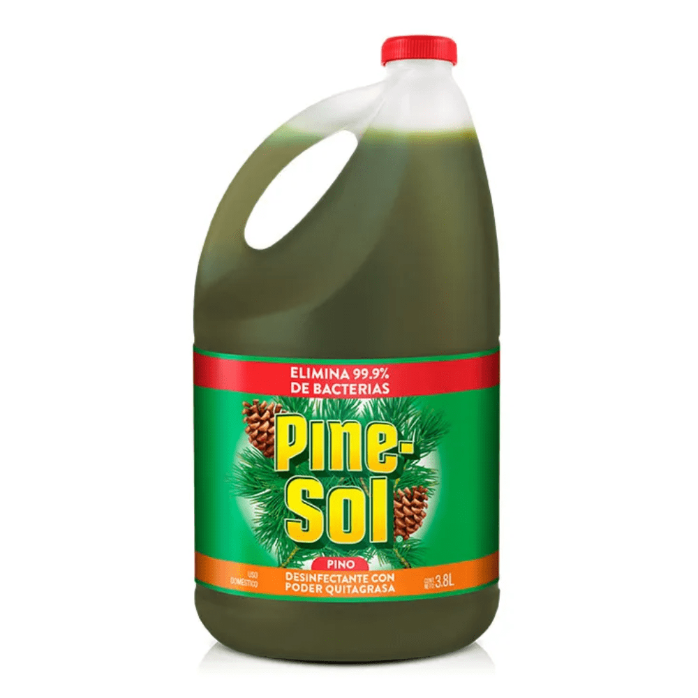 Utiliza el poderoso Desinfectante Pine Sol de 3.8 litros, el cual es un quita grasa ideal para eliminar la mugre y las manchas más difíciles de cualquier superficie, dejando un aroma agradable a pino.
